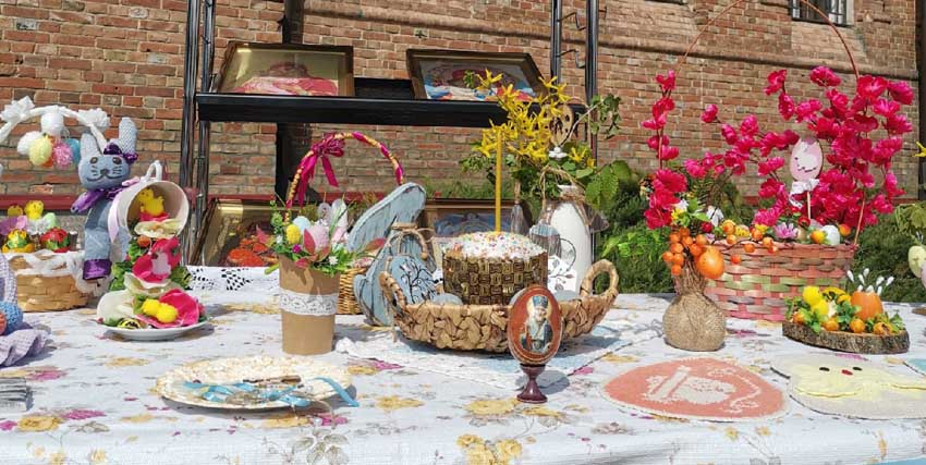 Выставочные интерактивные площадки на территории Александро-Невского кафедрального собора сегодня начали работать с раннего утра. Где можно было увидеть сдобные куличи, расписные яйца, пасхальные сувениры, тематические картины и поделки.