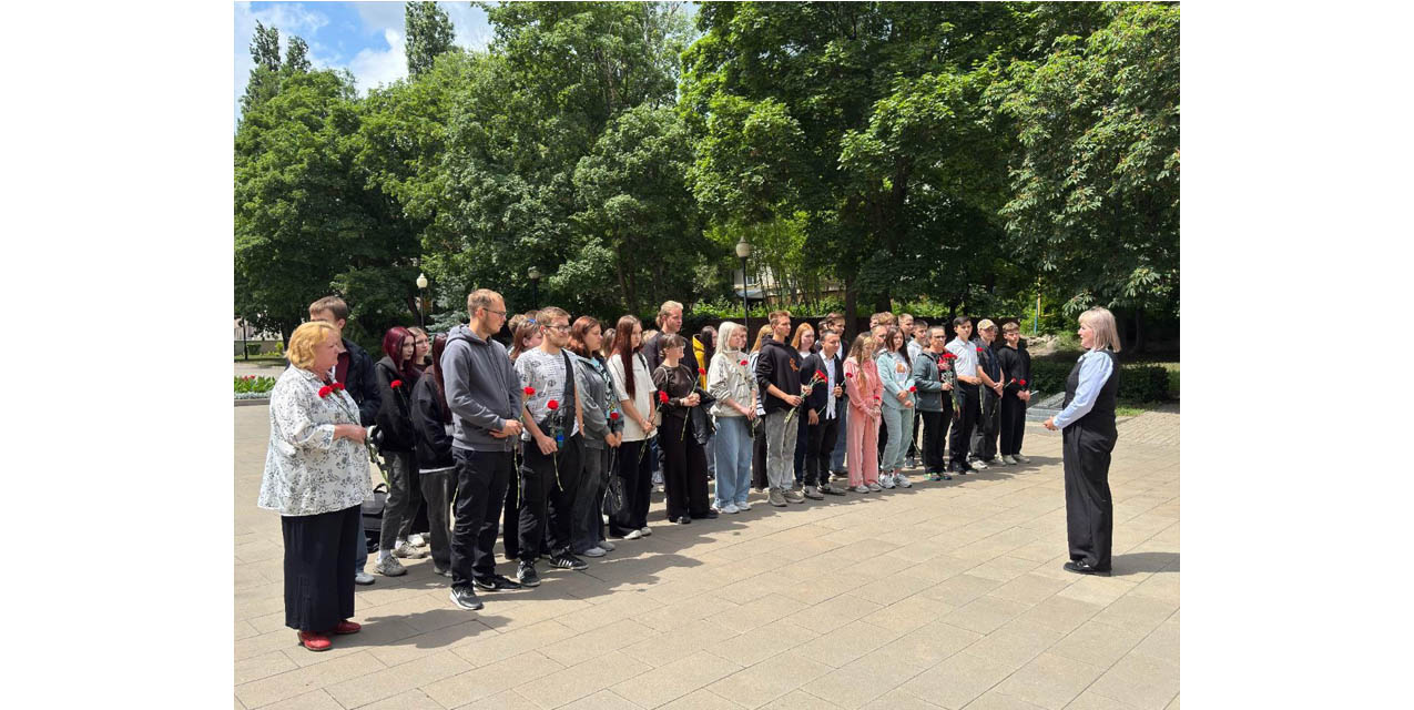 Ребята из групп ПГ2-1(23), ПГ2-2(23), МД2-1 (23), МД2-2(23), ПГ3-1(22) вместе с преподавателями Еленой Денисовой, Анной Усовой и педагогом–организатором Любовью Фоминой почтили память минутой молчания всех погибших в годы Великой Отечественной войны и возложили цветы к мемориалу.