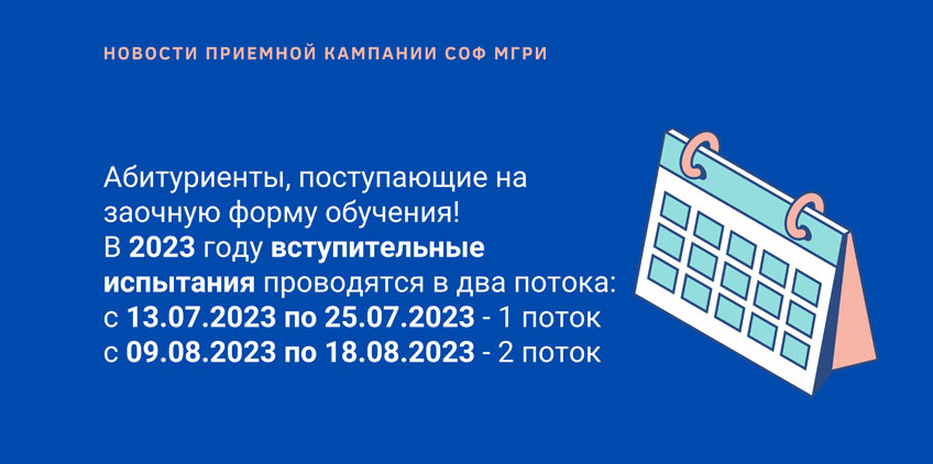 В 2023 году вступительные испытания проводятся в два потока: