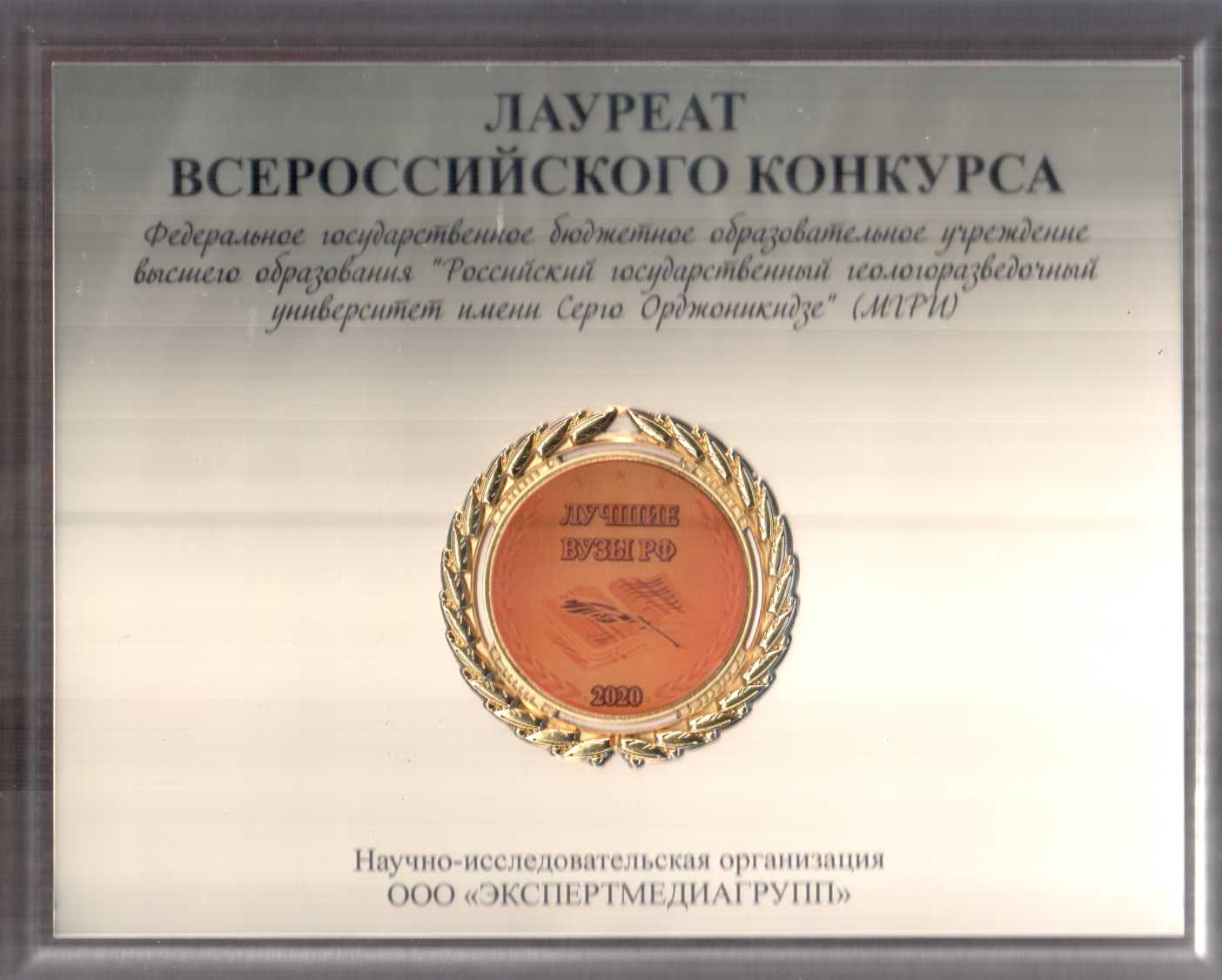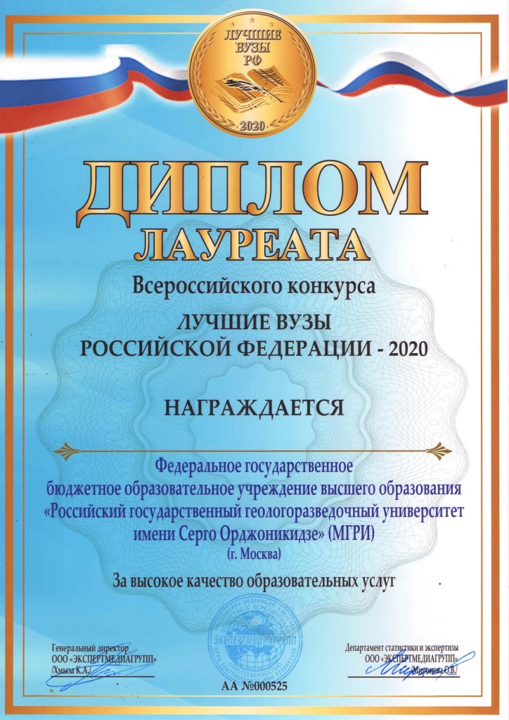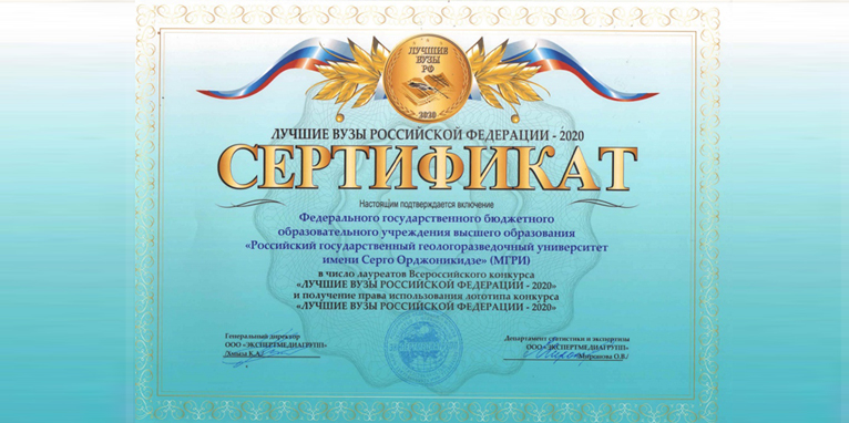 Российский государственный геологоразведочный университет имени Серго Орджоникидзе стал лауреатом конкурса «Лучшие вузы Российской Федерации – 2020», который ежегодно проводит независимая научно-исследовательская организация ООО «Экспертмедиагрупп».