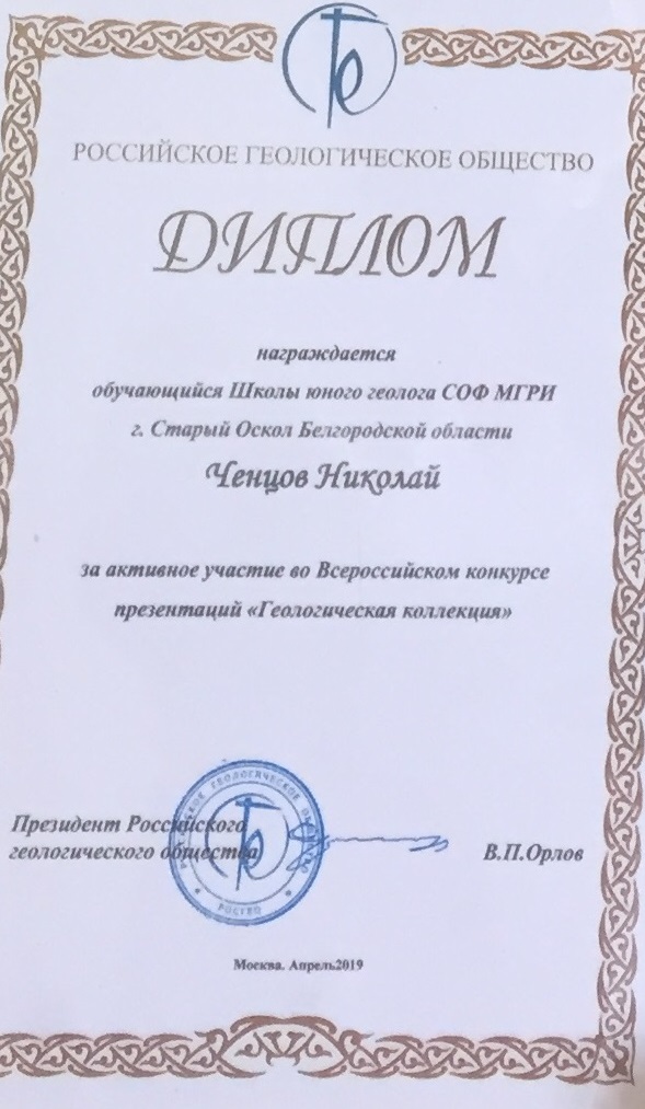 Всероссийский конкурс «Геологическая коллекция», организатором которого выступили Российское Геологическое общество, Государственный геологический музей им. В.И.Вернадского РАН, Минералогический музей имени А. Е. Ферсмана РАН проводился в течение трех месяцев. В нем приняли участие более пятидесяти школьников из всех уголков нашей страны. В том числе – обучающиеся школы юного геолога Старооскольского филиала Государственного геологоразведочного университета имени Серго Орджоникидзе.