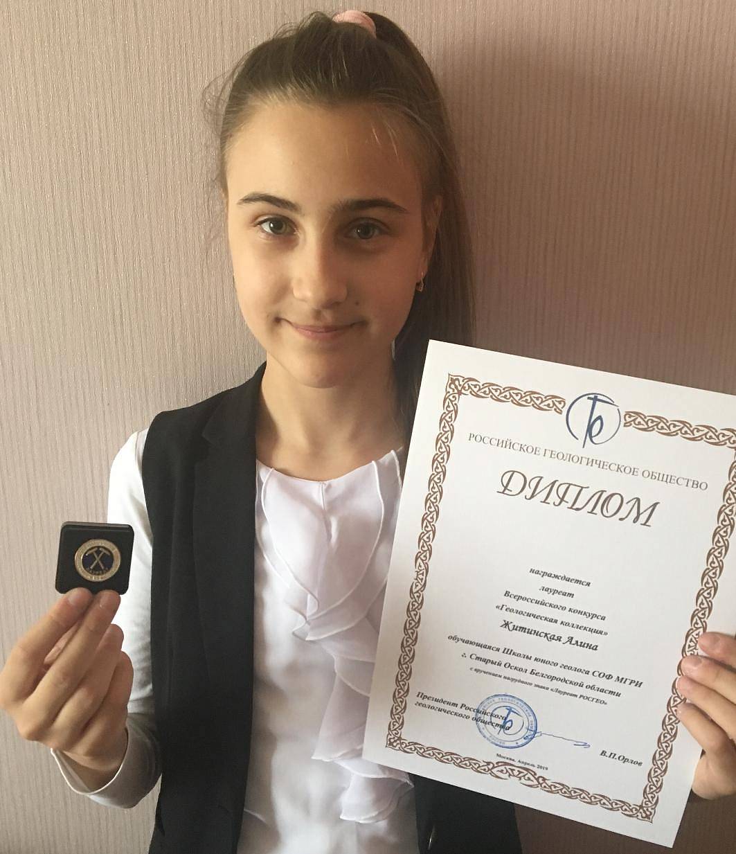 Звание лауреата в номинации «Самый интересный экспонат» с вручением нагрудного знака «Лауреат РОСГЕО» получила Алина Житинская. Николай Ченцов отмечен дипломом РОСГЕО как активный участник конкурса. Старшим наставникам юных геологов - заведующей музеем Н. В. Дятловой, преподавателю геоэкологических дисциплин О. М. Житинской и директору Старооскольского филиала МГРИ, к.э.н. С. И. Двоеглазову вручены благодарственные письма от имени президента РОСГЕО В. П. Орлова за популяризацию геологических знаний и подготовку лауреатов Всероссийского конкурса.