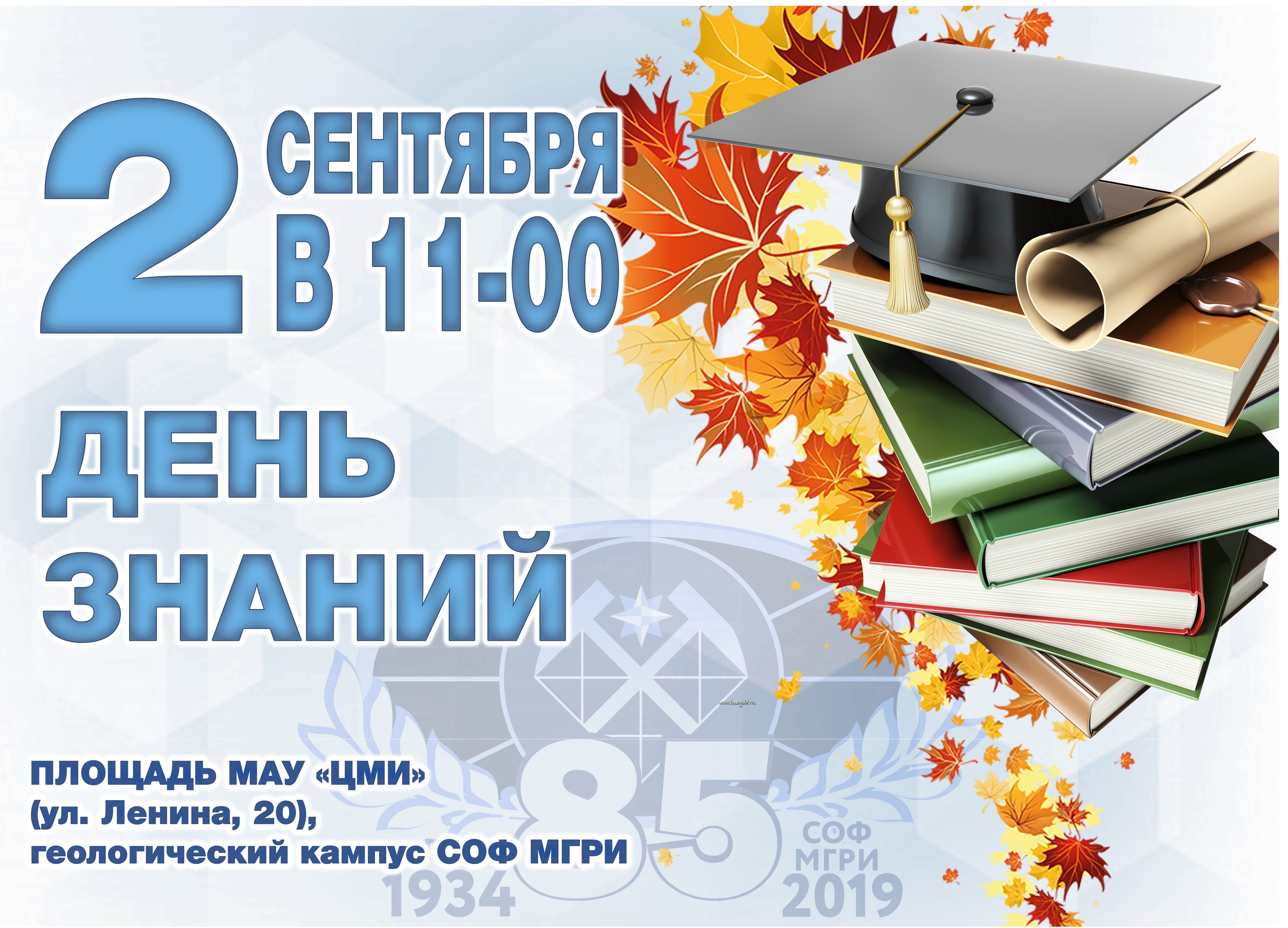 Старооскольский филиал Российского государственного геологоразведочного университета имени Серго Орджоникидзе приглашает всех желающих на торжественные мероприятия, посвященные Дню знаний, которые состоятся 2 сентября на площади МАУ "Центр молодежных инициатив".