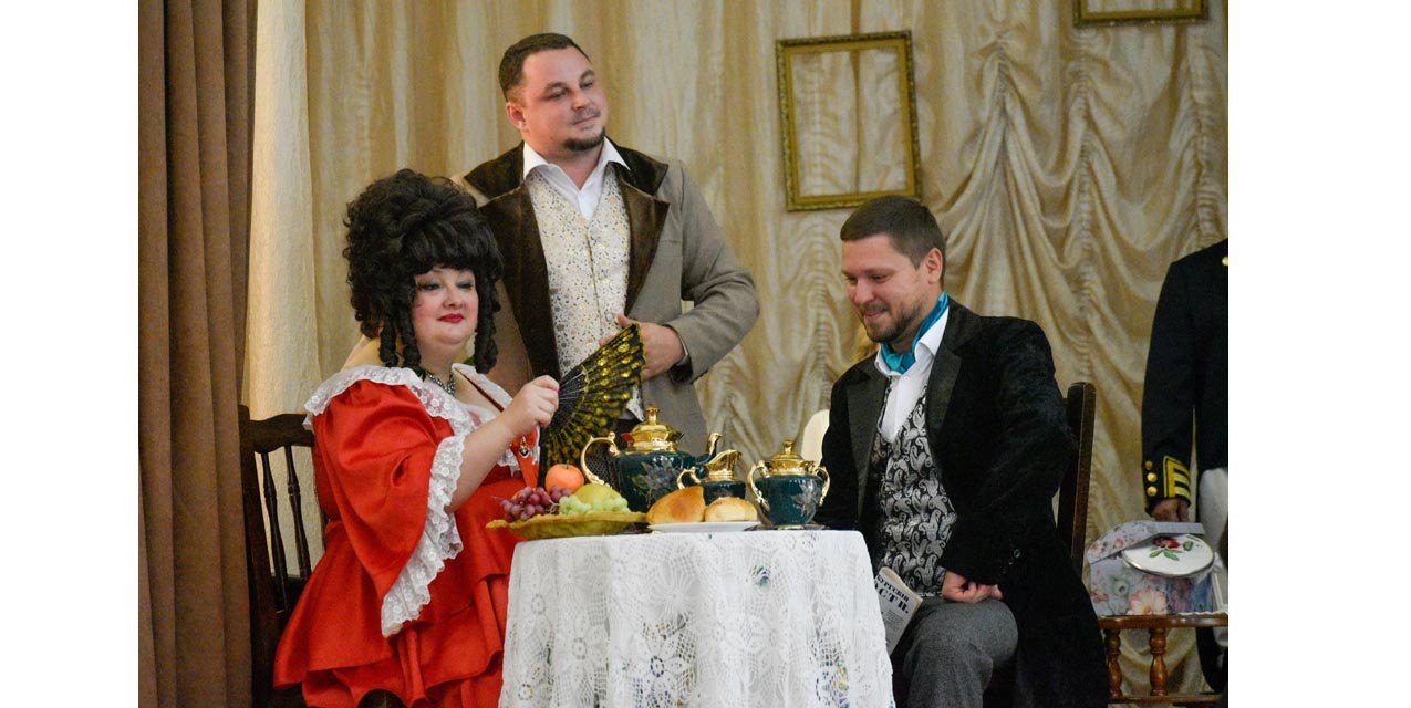 На историческом чаепитии присутствующие смогли насладиться атмосферой конца XVIII - начала XIX веков благодаря тщательно продуманному декору и аутентичным костюмам артистов Центра культурного развития «Горняк». Это позволило участникам полностью погрузиться в атмосферу того времени.