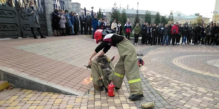 На базе филиала работают военно-патриотические клубы, руководители и курсанты которых провели занятия по отработке навыков работы с огнетушителем и оказания первой доврачебной помощи.