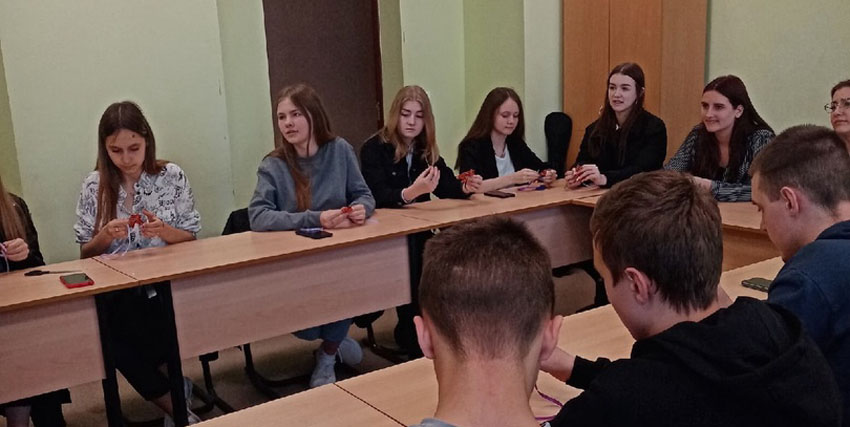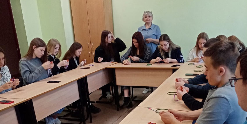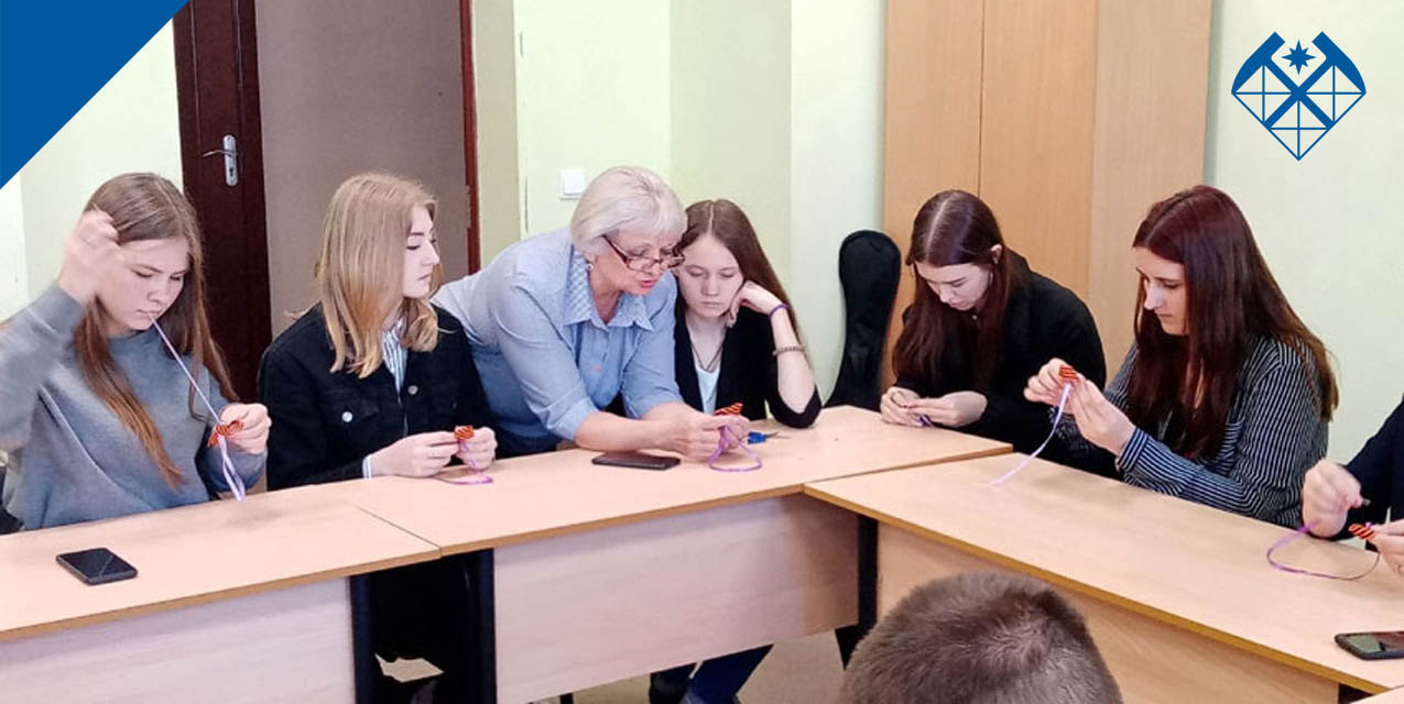Студенты украшали георгиевскую ленту цветущей сиренью – традиционным майским цветком, распускающимся к празднику. Для этого им пришлось освоить технику канзаши, с помощью которой и были выполнены цветы.