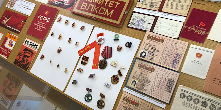 Сегодня в музее истории СОФ МГРИ открылась выставка, посвященная Дню создания Всесоюзного ленинского коммунистического союза молодежи. На ней собраны уникальные вещи, значки, марки и много другое с символикой ВЛКСМ.