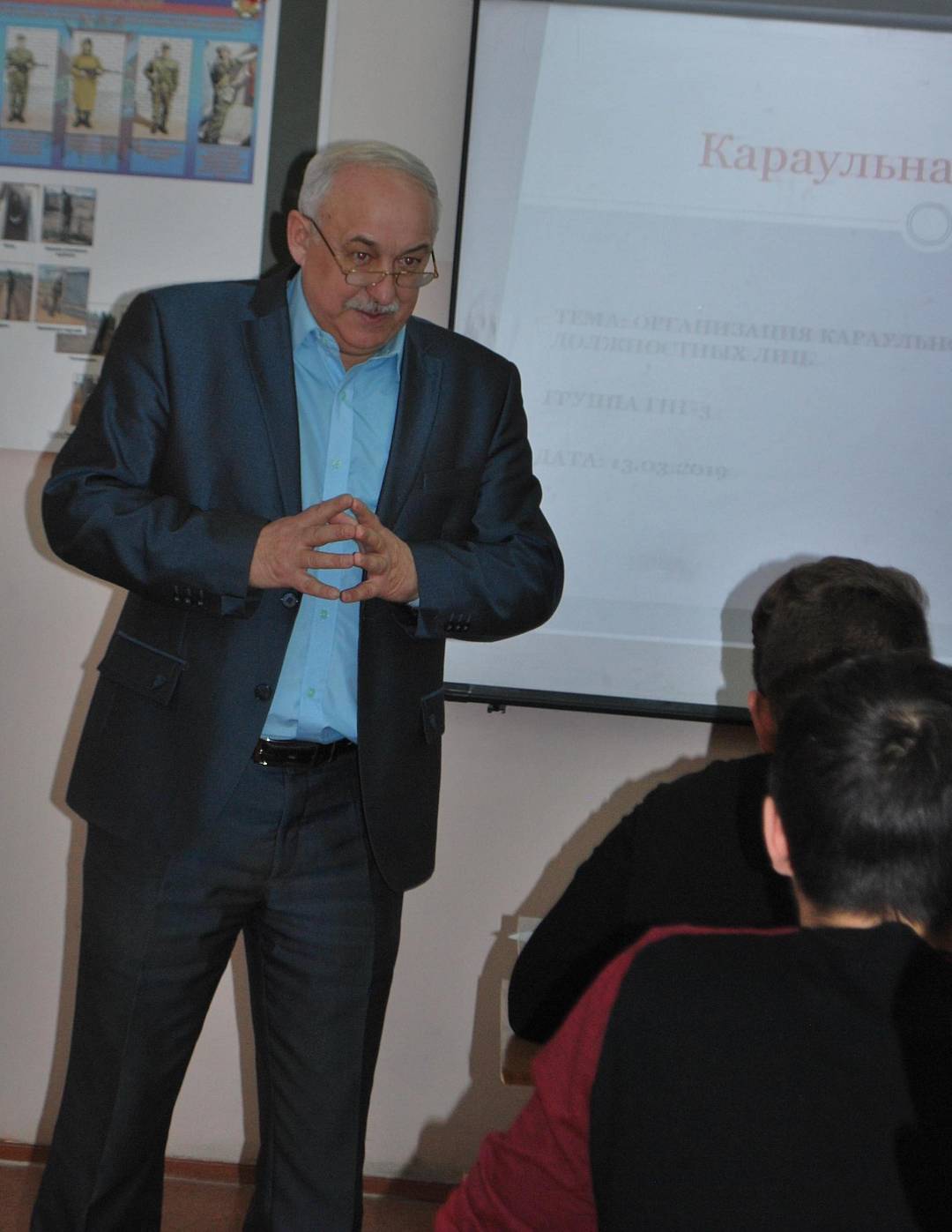 - Бычковым В.А. в группе ГНГ-3-1 (специальность «Геология нефтяных и газовых месторождений») по учебной дисциплине «Безопасность жизнедеятельности» на тему: «Организация караульной службы. Обязанности должностных лиц»;