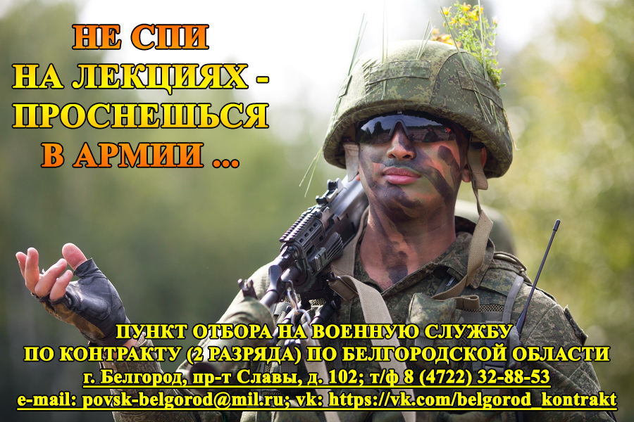 Пункт отбора на военную службу по контракту (2 разряда) по Белгородской области.